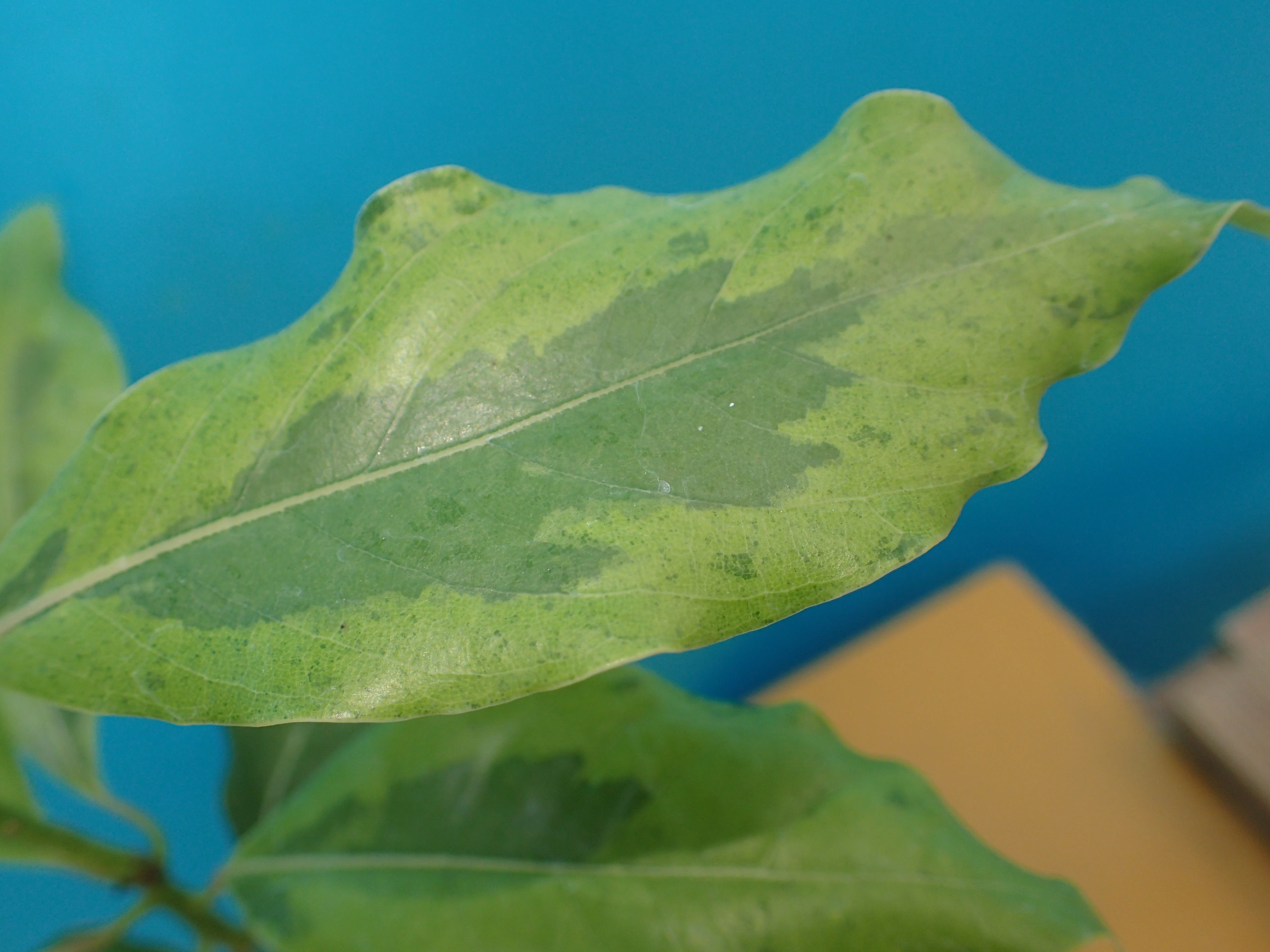 革質で硬く、表面はつやがあって深緑色をしています。