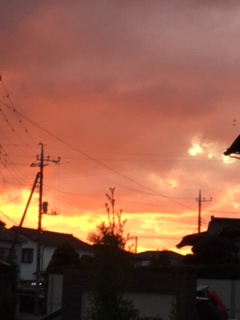 真っ赤に燃える夕日。